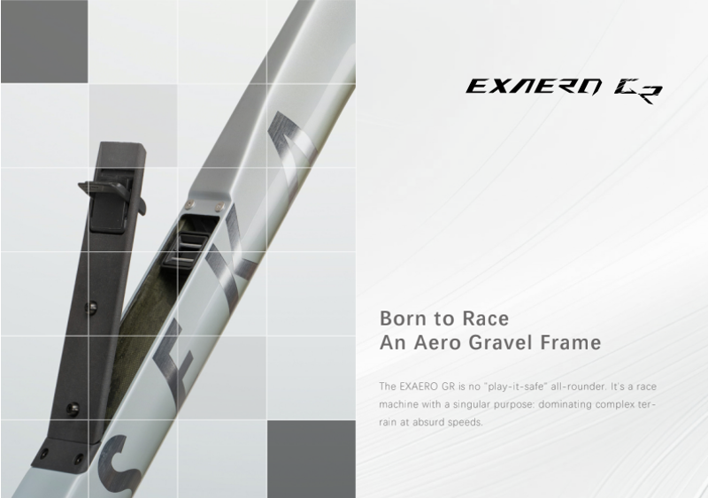 Premium carbon gravel racing frame with integrated aerodynamic features, hidden downtube storage, and modular mounting points for accessories. Maximum tyre clearance up to 56 mm front / 52 mm rear, T47 threaded bottom bracket, UDH derailleur hanger and flat-mount disc brake compatibility.