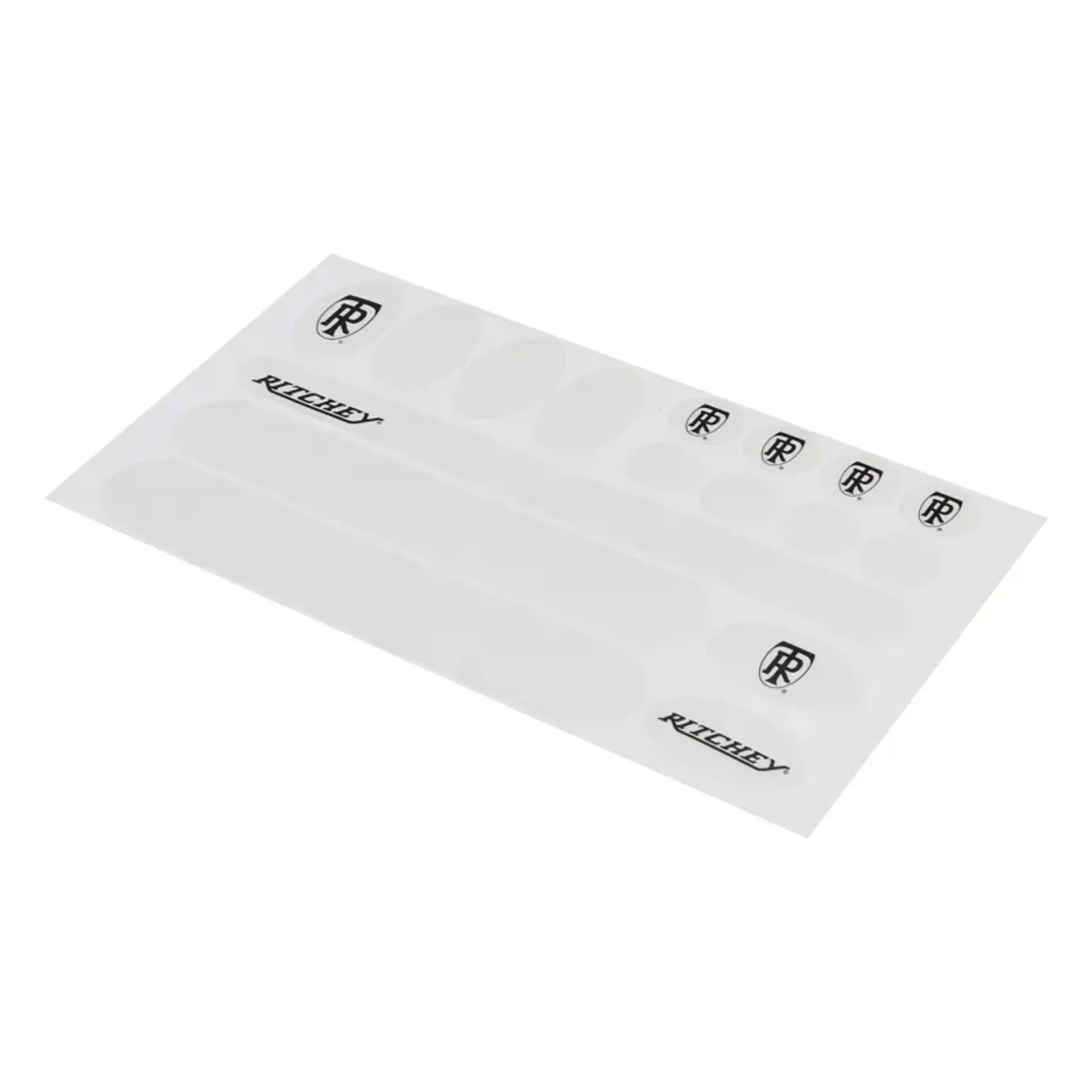 The official Ritchey Frame Protection Stickers are here to defend your precious whip from cable rub, shoe scuffs and other damaging wear. Cover every possible contact point with 17 durable stickers of various sizes and shapes. Some of these clear stickers have the Ritchey logo, some of them don't. Stick them on the frame and ride without worry!