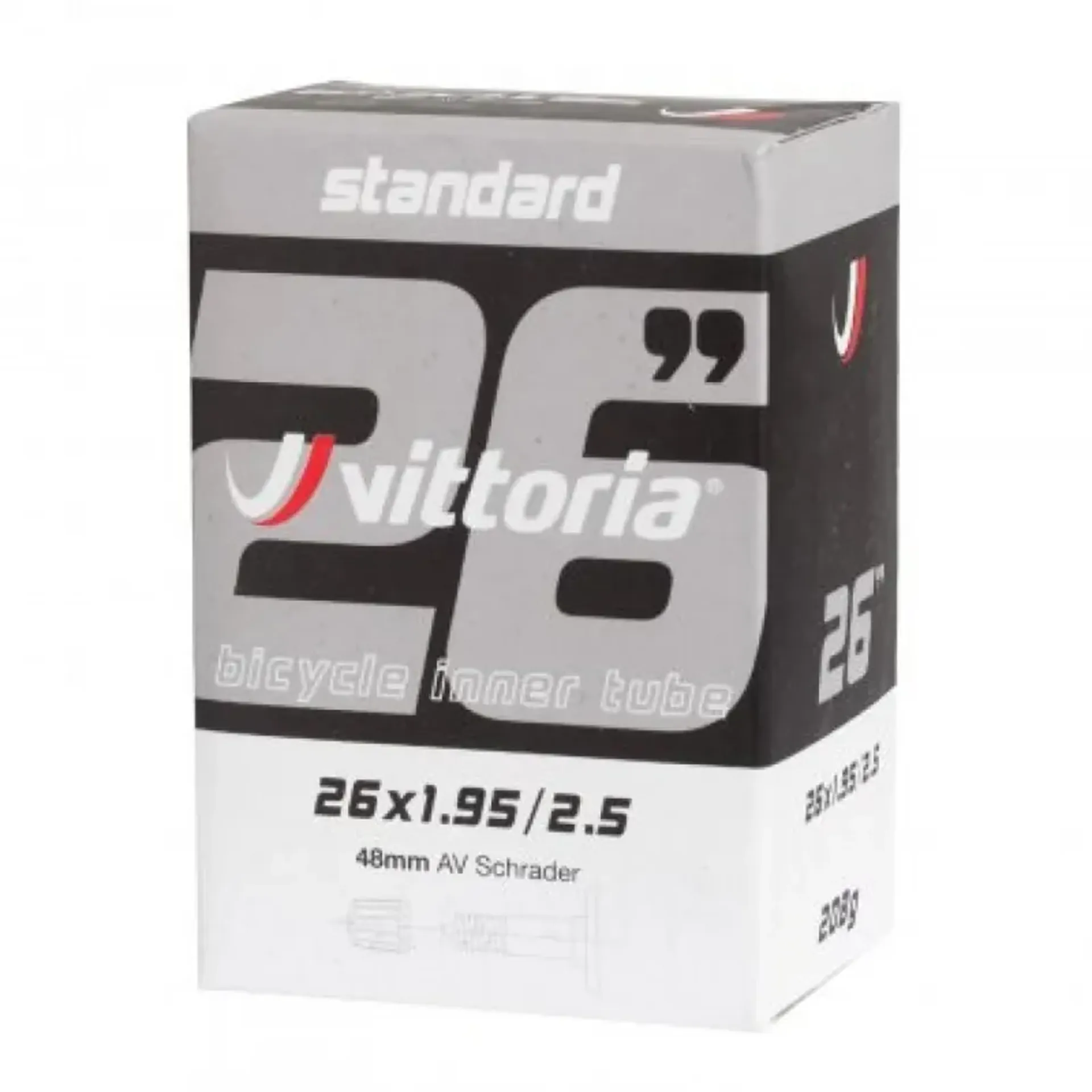 Question(s) asked regarding Vittoria Standard 26x1.95/2.50 48mm Schrader Valve Inner Tube in Black