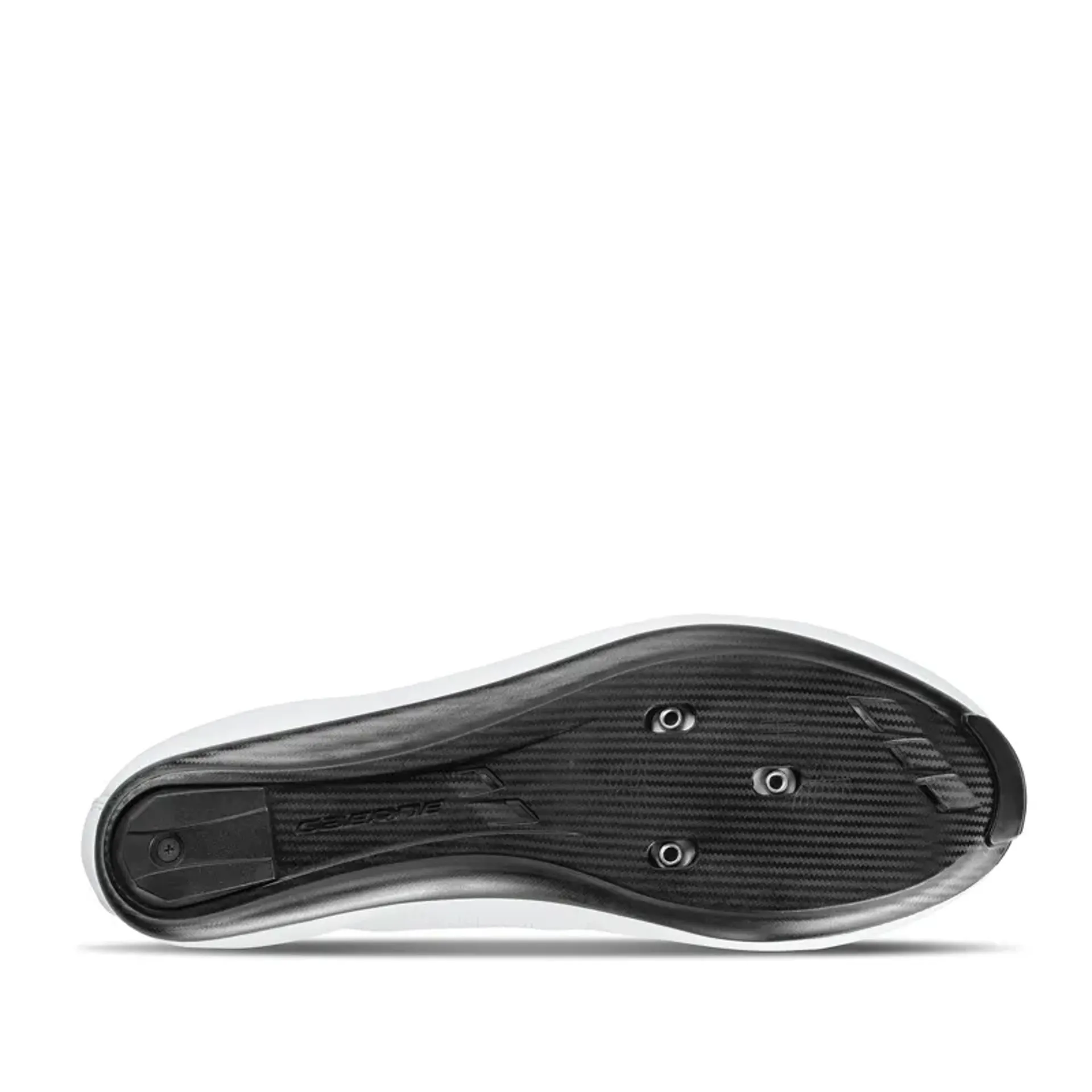 The Gaerne EPS Carbon Power Sole 8.0 is made of nylon enriched with carbon for enhanced rigidity. Its thin profile allows for efficient pedalling without energy dispersion, while the plantar arch shape enhances foot stability. Strategically placed air vents and internal channels ensure superior ventilation. Frontal non-slip rubber inserts and rear replaceable PU inserts provide secure walking. Featuring 9mm expanded cleat position options and an integrated alignment scale, cyclists can easily replicate their preferred cleat positions. The sole is compatible with all clipless pedals, boasting a rigidity index of 8.